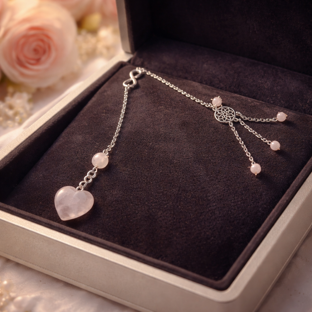 ✨ Pendule en Quartz Rose – Forme Cœur